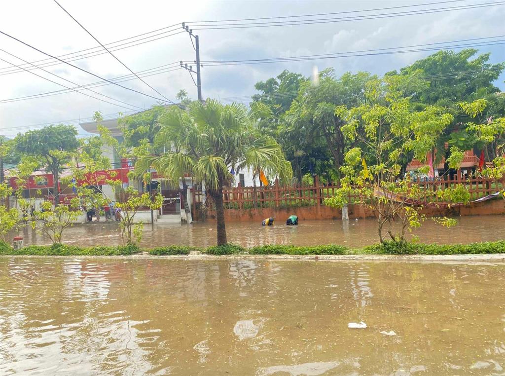 Mưa lớn vào chiều 28/3 khiến một số tuyến nội thị Prao bị ngập cục bộ. Ảnh: Đ.N