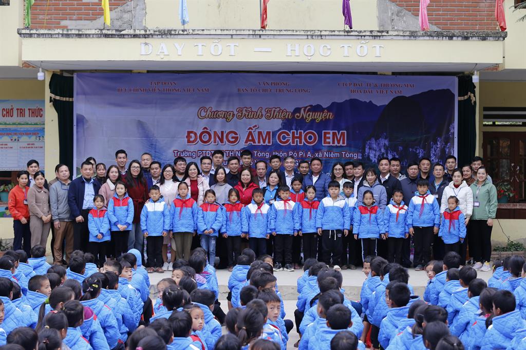 Vừa qua, VNPT Hà Giang đã đại diện Tập đoàn Bưu chính Viễn thông Việt Nam phối hợp cùng Cục BVCTNB - Ban Tổ chức Trung ương tổ chức chương trình “Đông ấm cho em” tại Trường PTDTBT tiểu học Niêm Tòng, thôn Pó Pì A, xã Niêm Tòng, huyện Mèo Vạc, tỉnh Hà Giang.