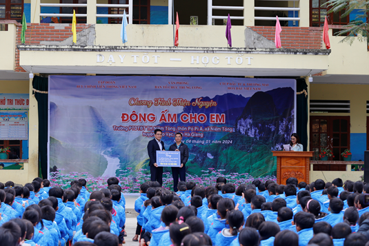 Chương trình tổ chức với mục đích phát huy tinh thần truyền thống tương thân tương ái của dân tộc đối với các vùng khó khăn nói chung và các em nhỏ vùng sâu vùng xa nói riêng, cùng với mong muốn mang đến cho các em tình cảm ấm áp, xoá tan lạnh giá của vùng núi. Đây cũng là nguồn động viên tinh thần rất lớn cho các em học sinh thêm chăm ngoan, học giỏi hơn; để các em có mùa đông ấm áp khi tới trường. Tại đây, ông Lê Tuấn Anh, Phó Giám đốc Viễn thông Hà Giang, Chủ tịch Công đoàn VNPT Hà Giang đã đại diện Tập đoàn Bưu chính Viễn thông Việt Nam lên trao quà tặng gồm: 01 giếng khoan công nghiệp, 150 đệm giữ nhiệt, 10 bảng trượt ngang 04 tấm với tổng giá trị tiền là 180 triệu đồng. Trước những khó khăn hàng ngày mà thầy cô và các em học sinh vẫn đang hàng ngày phải đối mặt thì những món quà của đoàn, vượt hàng trăm cây số, không quản ngại đường xá xa xôi mang tới đây hết sức ý nghĩa. Cũng tại chương trình, đồng chí Lê Ngọc Hoan, Phó Chánh Văn phòng BTC Trung ương đại diện lên trao tặng 450 áo ấm mùa đông trị giá 45 triệu đồng; 52 áo len; 52 khăn len cho giáo viên và cán bộ của Trường PTDTBT Tiểu học Niêm Tòng. Với những món quà, những chiếc áo len, khăn len ấm thiết thực sẽ phần nào sưởi ấm, giúp cho con đường tới trường của các em bớt gian nan hơn, là nguồn động lực để các thầy cô nơi đây thêm vững tin trên chặng đường gieo chữ vùng cao biên giới.