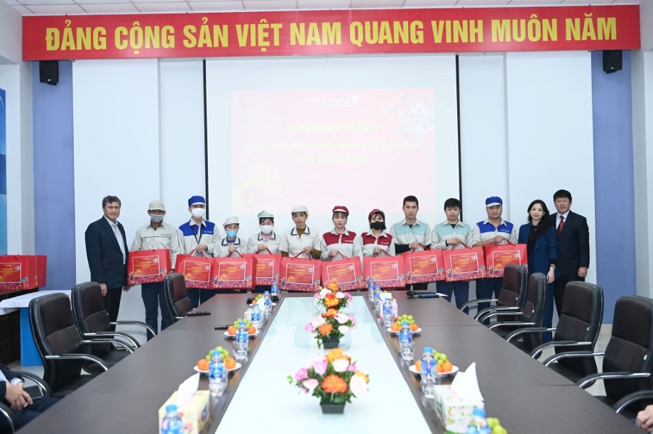 Sáng 30/1 tại Hà Nội, Công ty VNPT Technology tổ chức chương trình tặng quà Tết Nguyên đán Giáp Thìn 2024 cho toàn bộ công nhân đang làm việc tại Tổ hợp Công nghệ Công nghiệp Hoà Lạc (gồm Tổng Kho Hòa Lạc; Nhà máy sản xuất điện tử; Trung tâm Điều hành tổ hợp Hoà Lạc). Tham dự chương trình có đồng chí Đinh Thị Thu Hà - Phó Tổng Giám đốc VNPT Technology; đồng chí Phạm Anh Quân - Phó Chủ tịch Công đoàn VNPT Technology, Giám đốc Tổ hợp Hòa Lạc; cùng đại diện công nhân các đơn vị.