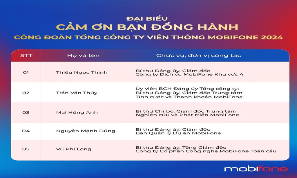 CÔNG ĐOÀN MOBIFONE TỔ CHỨC LỄ TÔN VINH CẢM ƠN BẠN ĐỒNG HÀNH, NGƯỜI LAO ĐỘNG TIÊU BIỂU VÀ CÁN BỘ CÔNG ĐOÀN XUẤT SẮC NĂM 2024