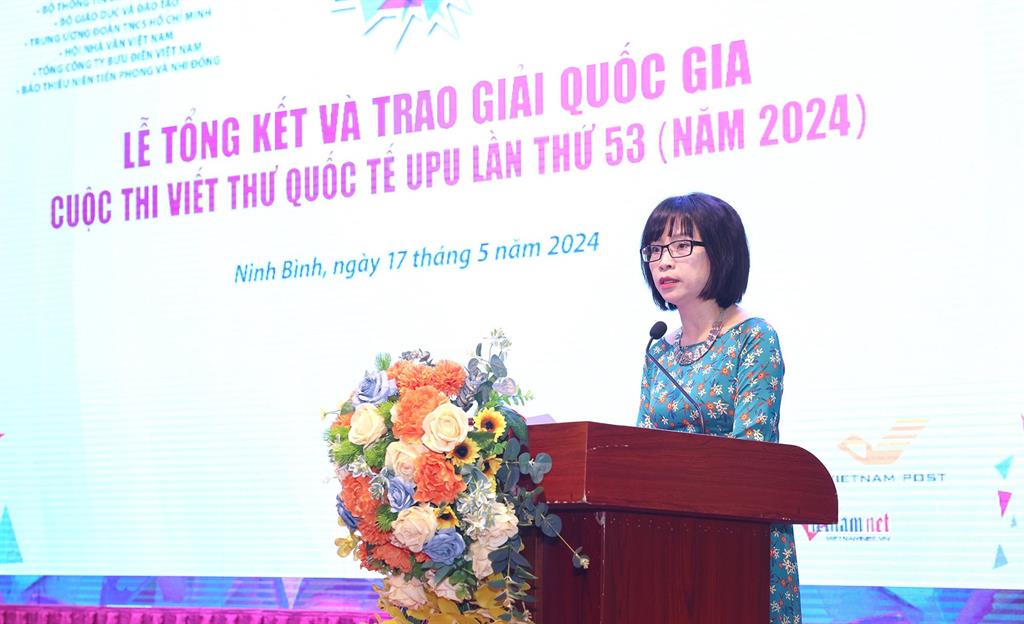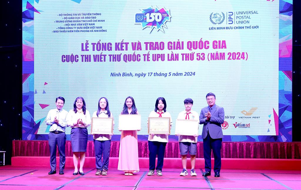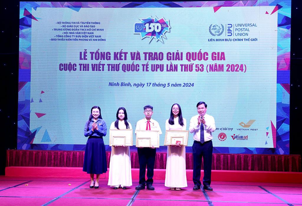 Lễ tổng kết và trao giải cuộc thi Viết thư quốc tế Liên minh Bưu chính thế giới (UPU) lần thứ 53 đã được tổ chức ngày 17/5/2024 tại TP. Ninh Bình. Tham dự Lễ trao giải có Thứ trưởng Bộ TT&TT, Trưởng Ban Tổ chức cuộc thi Bùi Hoàng Phương, Phó Chủ tịch UBND tỉnh Ninh Bình Tống Quang Thìn, Chủ tịch Hội đồng đội Trung ương Nguyễn Phạm Duy Trang.