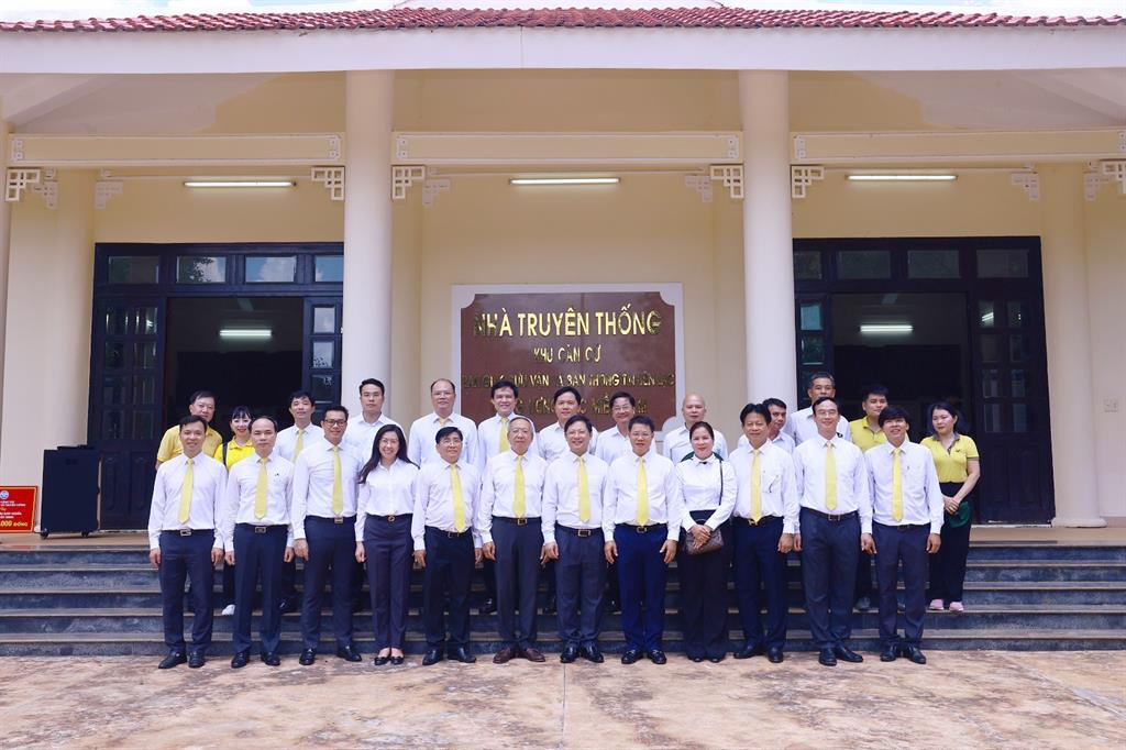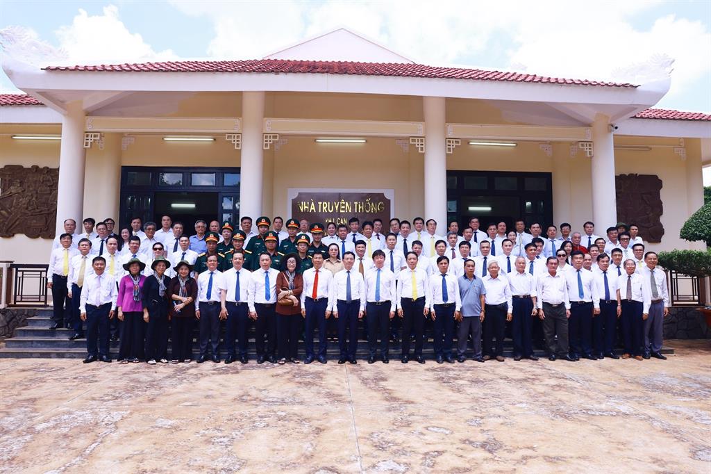 Các đại biểu chụp ảnh lưu niệm tại Nhà truyền thống Trung ương Cục miền Nam