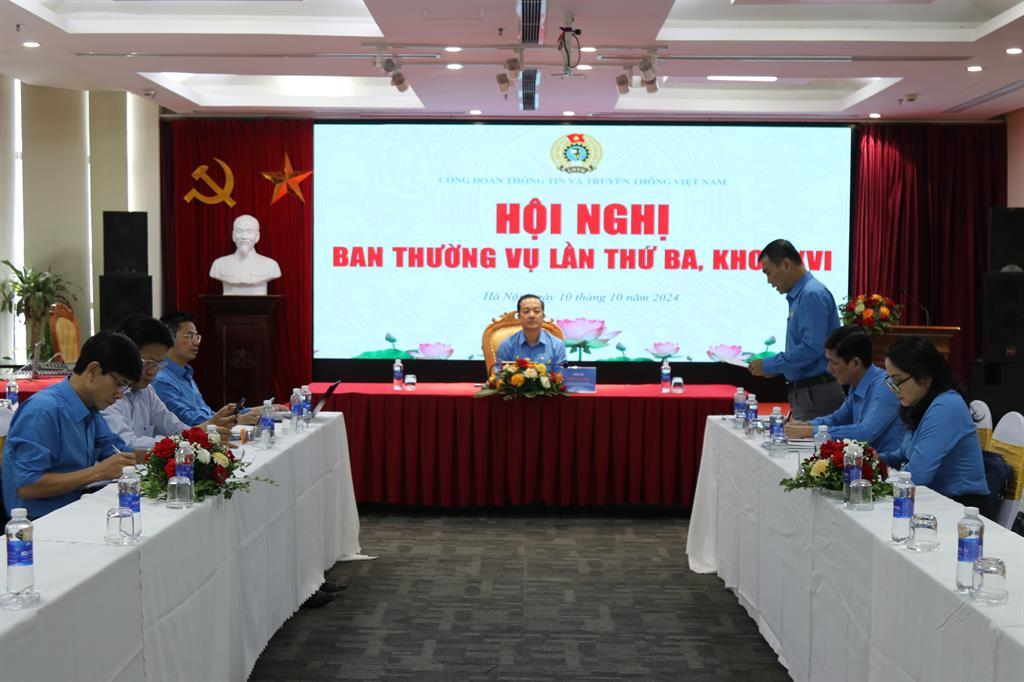 Hội nghị Ban Thường vụ, Ban Chấp hành Công đoàn Thông tin và Truyền thông Việt Nam lần thứ 3 khóa XVI diễn ra trong không khí các cấp công đoàn trực thuộc đang sôi nổi thi đua triển khai các giải pháp khắc phục khó khăn, phấn đấu thực hiện hoàn thành nhiệm vụ chính trị, kế hoạch sản xuất kinh doanh những tháng cuối năm và cả năm 2024.